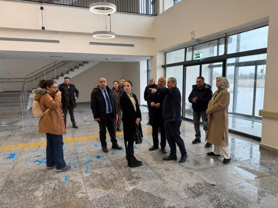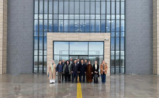 Heyete ayrıca yapımı tamamlanan ve 89 ünit kapasitesine sahip yeni Diş Hekimliği Hastanesi ile Fakülte Binası gezdirilerek kompleksin fiziki altyapısı, teknolojik donanımı, klinik ve laboratuvar alanları ile simülasyon ve uygulama üniteleri hakkında detaylı bilgi verildi. Modern mimarisi ve güçlü altyapısıyla dikkat çeken kompleksin, hizmete girmesiyle birlikte Türkiye’nin önde gelen diş hekimliği fakülteleri arasında yer almasının hedeflendiği; öğrencilerin uygulama ağırlıklı eğitim almasına imkân tanıyacak şekilde planlandığı ve hastalara nitelikli, erişilebilir ve çağdaş sağlık hizmeti sunmayı amaçladığı ifade edildi.